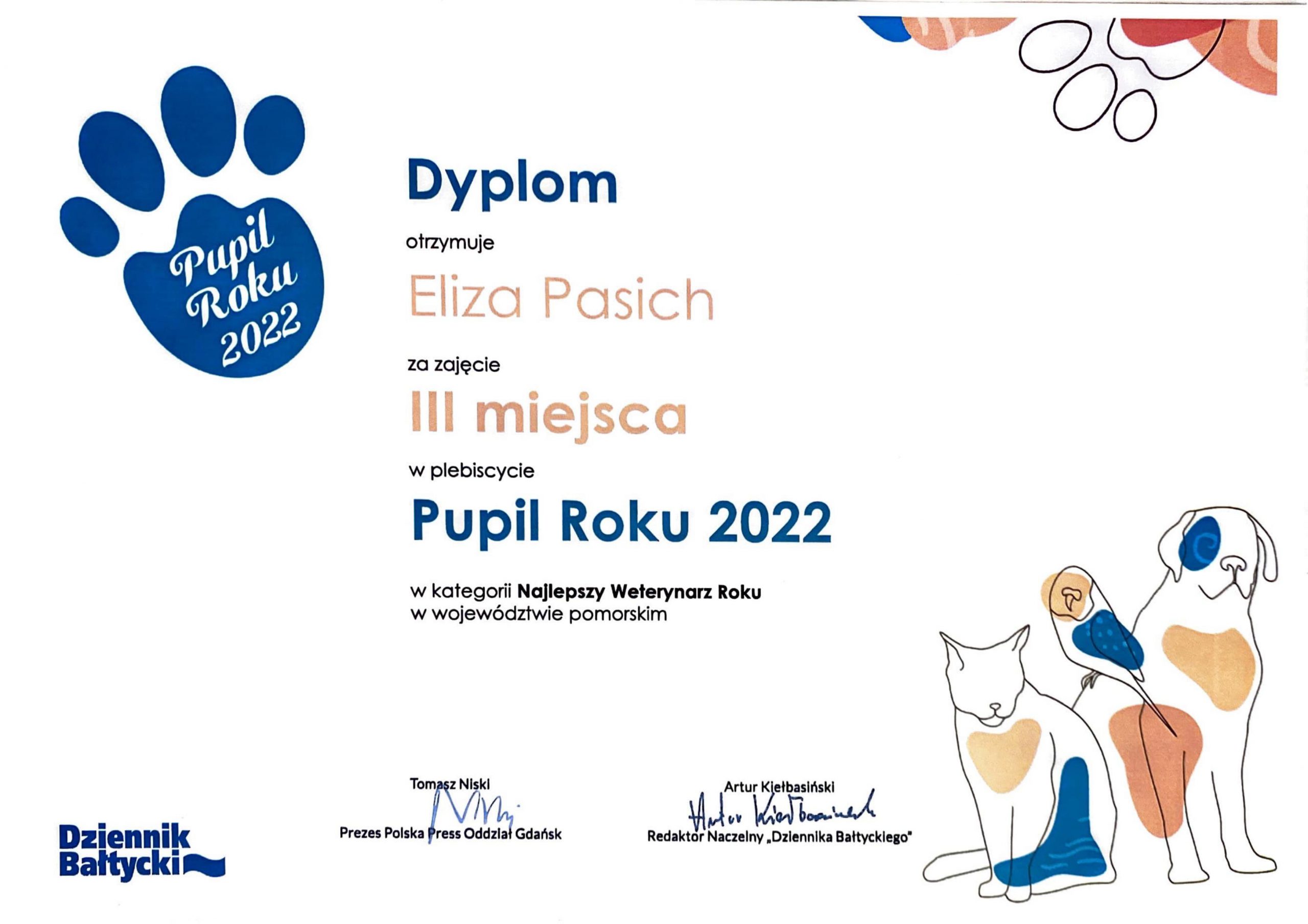 W 2022 lek. wet. spec. Eliza Pasich uzyskała tytuł